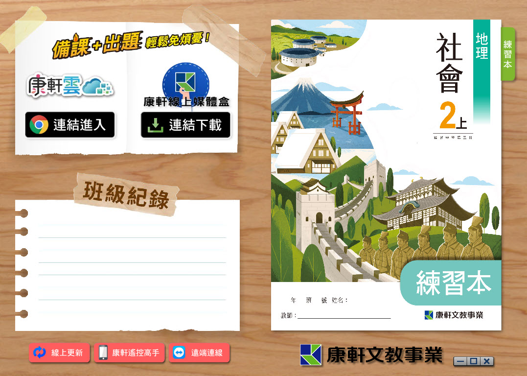 112學年上學期 國中 康軒版 地理 練習本電子書 2年級 教學光碟